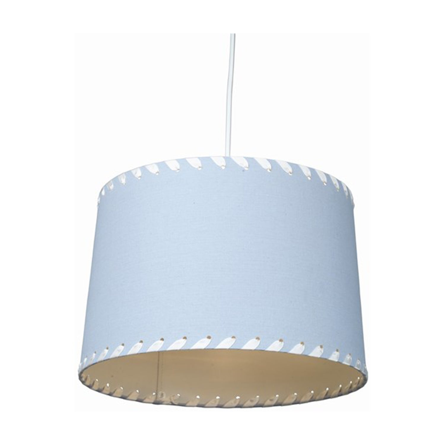 This tapered cylinder pendant features ribbon wrapped edges to give a simple yet striking appearance. Soft blue with pretty ribbon detailing, this lampshade would be perfect for use in children's rooms, from the early years onwards.