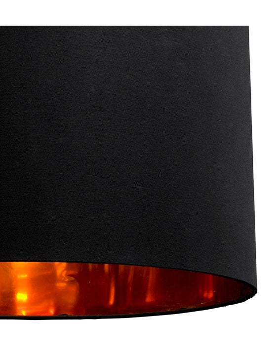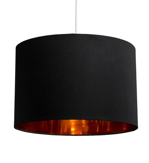 A plain cotton outer with a striking contrasting metallic effect inner to reflect light in your room. This shade creates a wonderful warming glow light effect.