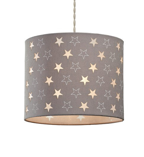 Cylinder pendant with laser cut and printed stars and slight shimmer lining.