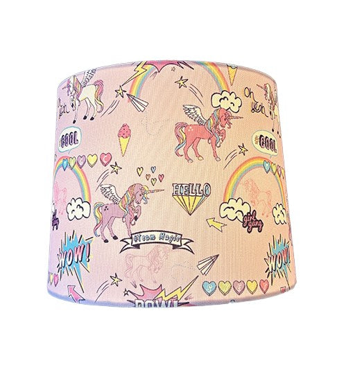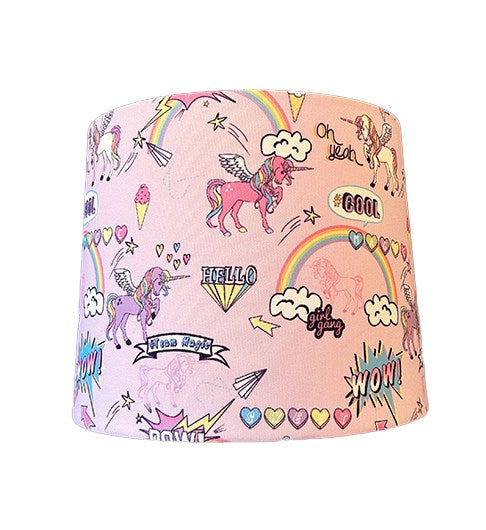 Add a splash of colour and a pop of fun with our tapered cylinder pendant shade with a bold unicorn cartoon print.